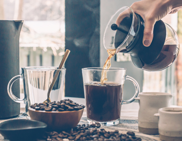 Nor coffee drink prepared from roasted coffee beans. Darkly colored, bitter, and slightly acidic, coffee has a stimulating effect.
